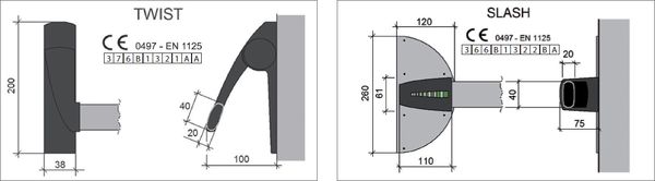 Wszystkie dźwignie są certyfikowane i oznaczone zgodnie z europejską normą EN 1125 oraz CE i dostarczane wraz z instrukcją montażu, obsługi i konserwacji.