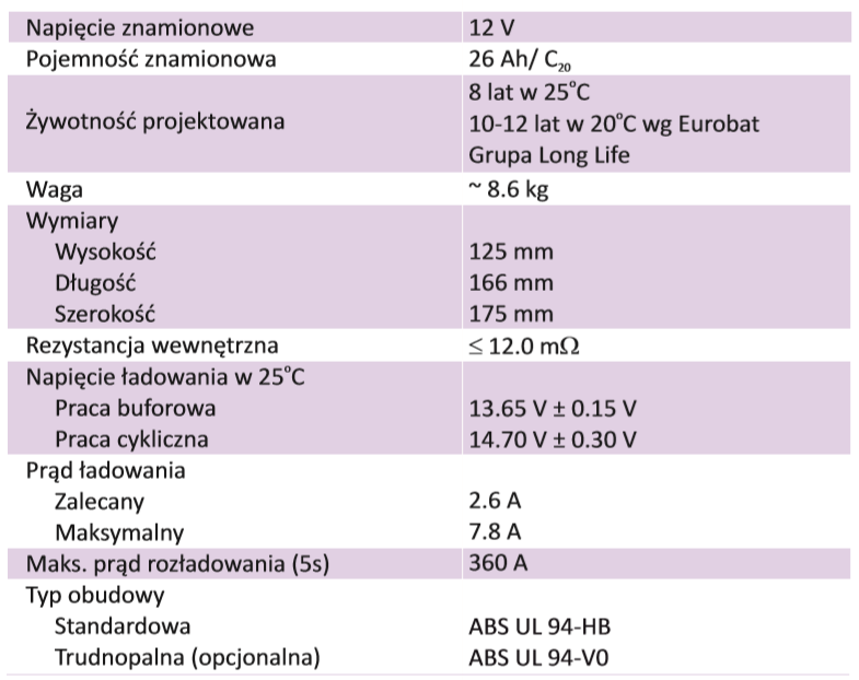 Akumulator ołowiowo-kwasowy ACUMAX AML 26-12