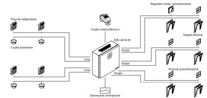 » Obsługuje dwie strefy oddymiania (2 linie, 3 grupy)