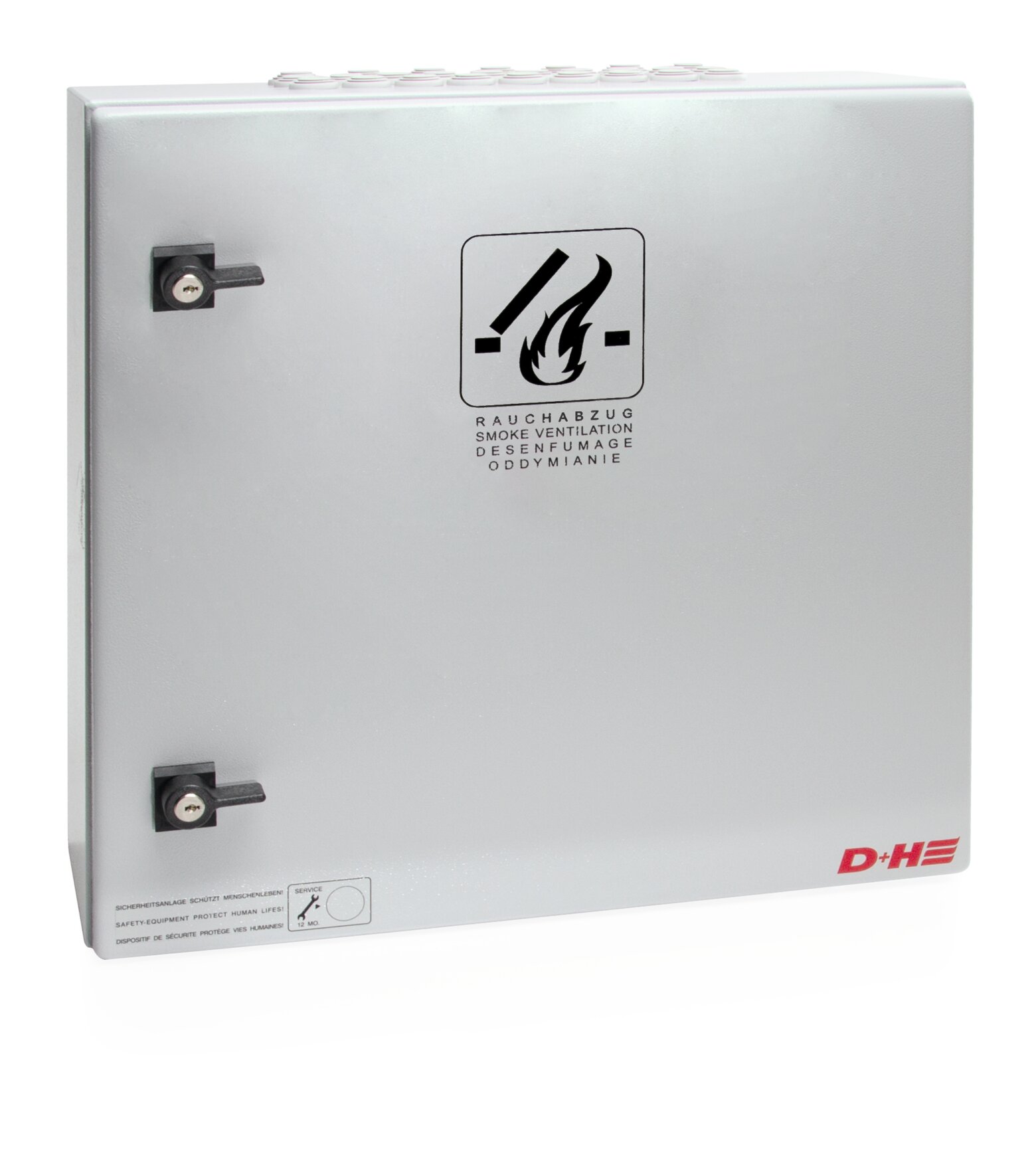 » Pozwala na podłączenie do 8 przycisków oddymiania i 14 czujek pożarowych na linię (dozwolone są wyłącznie czujki dopuszczone przez D+H)
