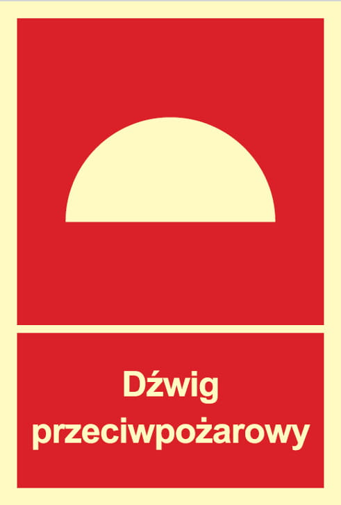 Znak "Dźwig przeciwpożarowy" do oznaczenia miejsca niezmiernie ważnego podczas akcji gaśniczej.