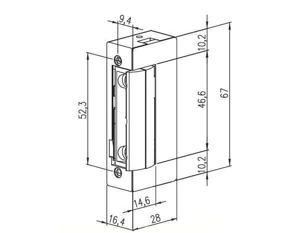 Elektrozaczep niskoprądowy 24VDC, zapadka promieniowa.