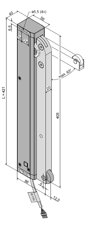 - Kąt otwarcia 0 - 93 stopni, programowalny