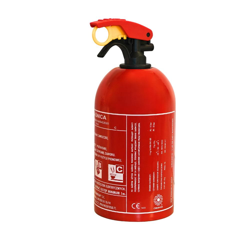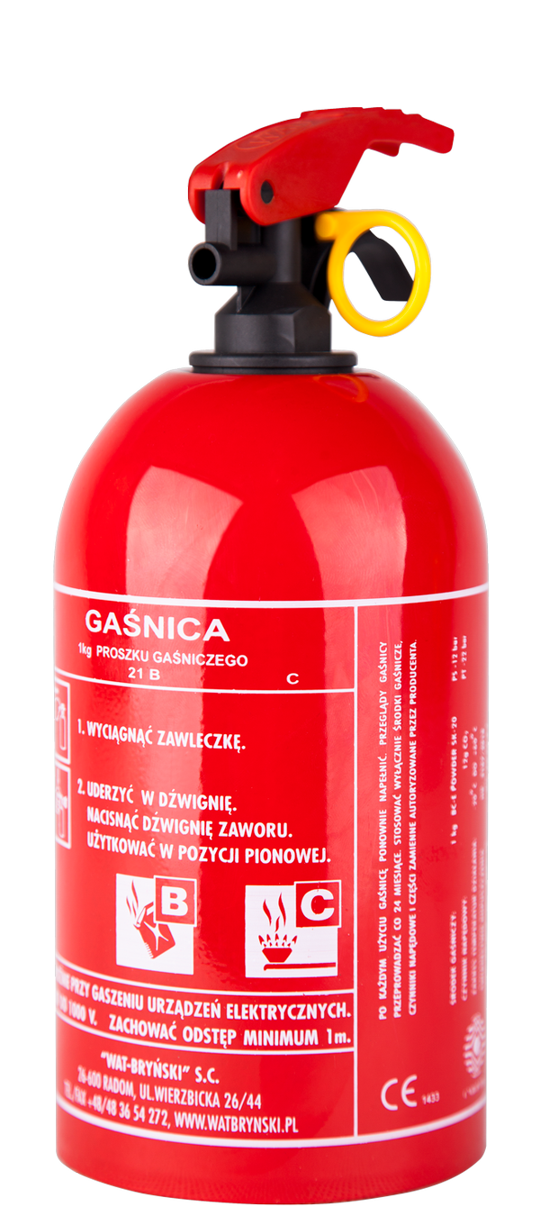 Gaśnica proszkowa BC 1kg do zabezpieczania samochodów osobowych, łodzi motorowych i żaglowych, przyczep kempingowych.
