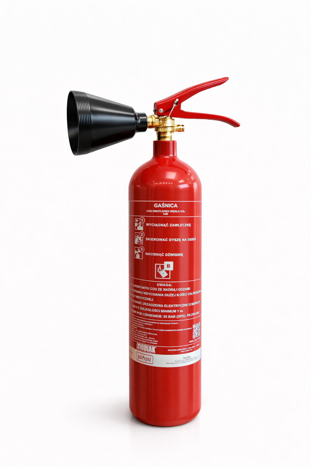 Gaśnica na dwutlenek węgla o wadze 2 kg może być używana w przypadku pożaru urządzeń elektrycznych, ale nie powinna być używana do pożarów klasy A (papier, drewno, tkaniny itp.).