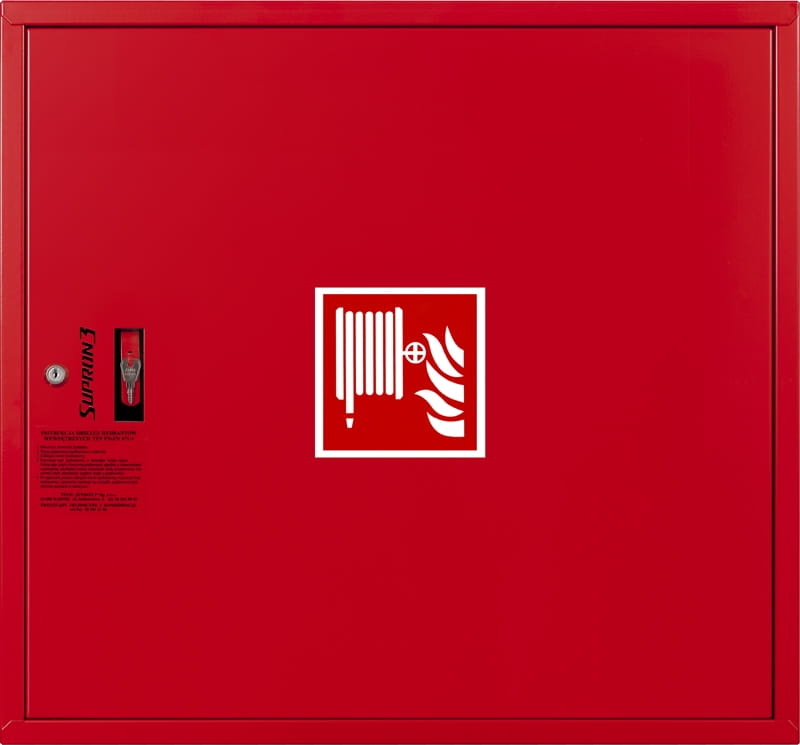 | Wymiary szafki hydrantu: Wysokość: 650 mm Szerokość: 700 mm Głębokość: 250 mm |