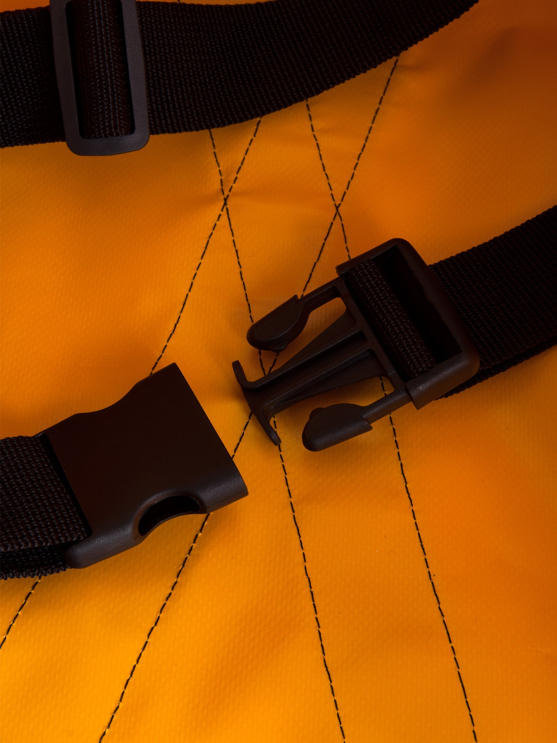 Krzesełko płachtowe wyposażone we wzmocnione uchwyty transportowe oraz regulowane pasy zamykane na klamry zatrzaskowe do zabezpieczenia poszkodowanego.