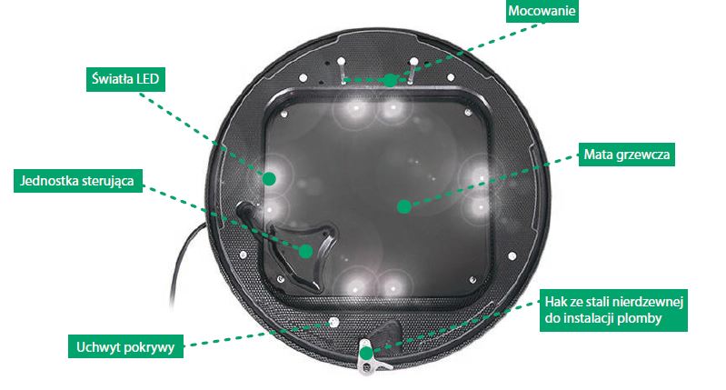 Moduł grzewczy szafki działa cały czas i uaktywnia się, gdy temperatura otoczenia spadnie poniżej 5 °C.