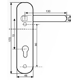 - Rozstaw pomiędzy klamką, a wkładką 72mm