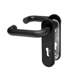 Klamka antyzaczepowa do drzwi przeciwpożarowych w kolorze czarnym, z tworzywa z rdzeniem stalowym. Pasuje do różnych Producentów drzwi, mi.in. Domoferm, Locher, Padilla, Wiśniowski. Wykonanie uniwersalne, pasuje do drzwi lewych i prawych o grubości skrzydła 40-63mm.