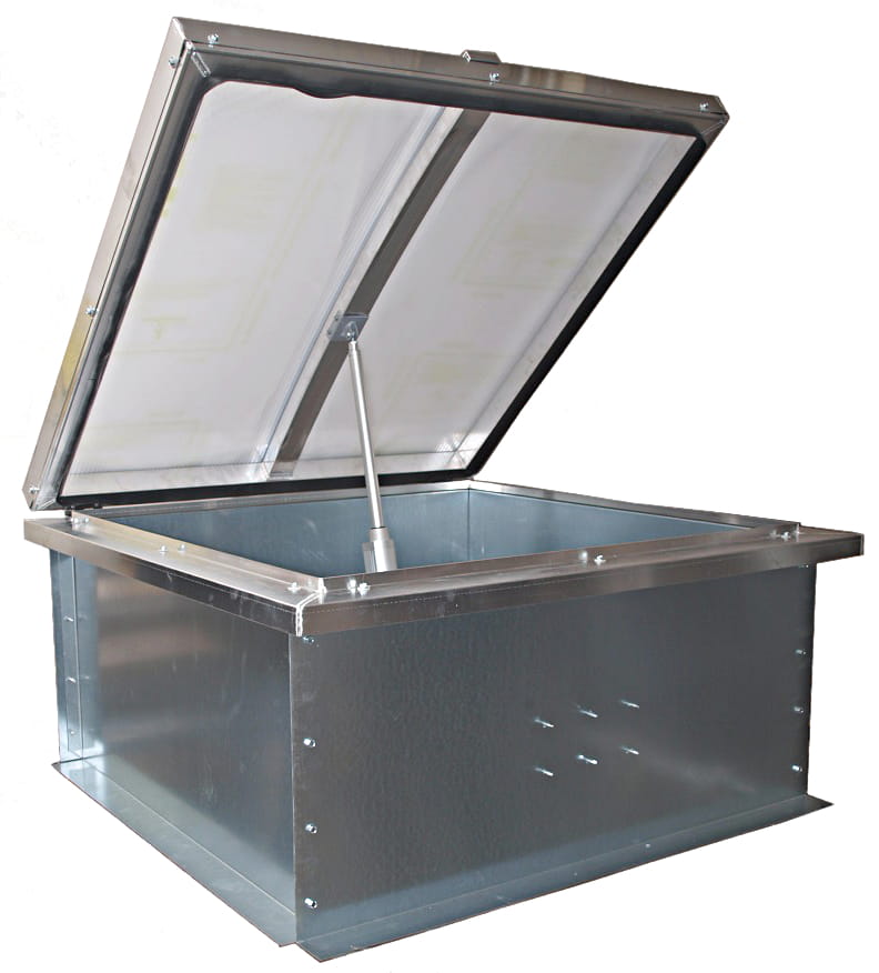 | Ocieplenie podstawy | Podstawy standardowo przygotowane są pod wykonanie 4 cm warstwy izolacyjnej z wełny mineralnej, bądź styropianu. Ocieplenie należy umieścić na zewnątrz podstawy podczas montażu klapy, a następnie wykończyć papą bitumiczną, folią PVC lub obróbką blacharską |