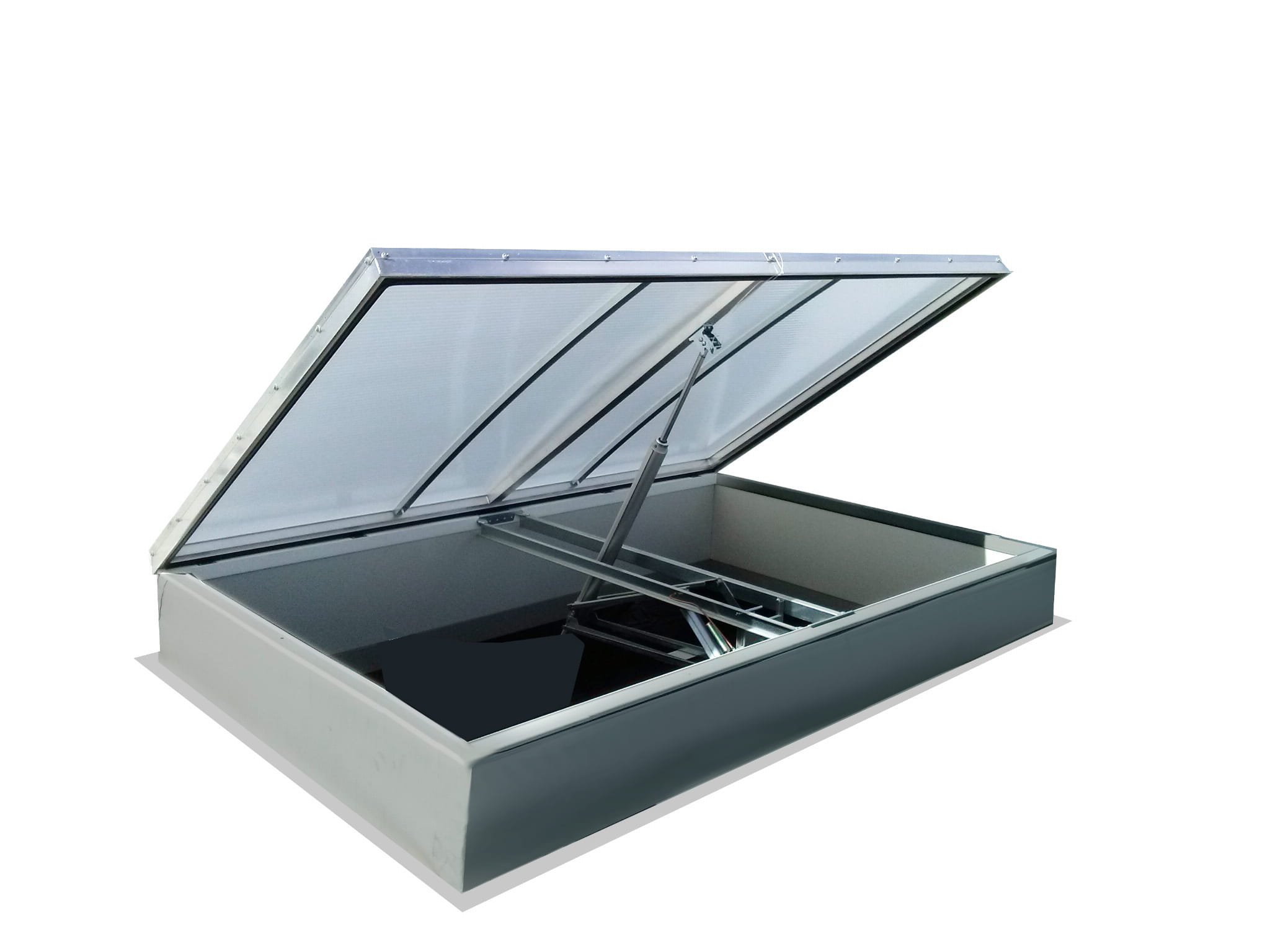 - Pokrycie wykonujemy również z poliwęglanu litego lub akrylu lub poliwęglanu przezroczystego, w tym przypadku skrzydło ma wypukły kształt, w kształcie kopuły.