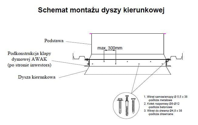 - Klapy można wyposażyć również w dysze kierunkowe, zwiększające powierzchnię czynną oddymiania klapy.