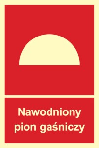 Znak "Nawodniony pion gaśniczy" do oznaczenia miejsca niezmiernie ważnego podczas akcji gaśniczej.