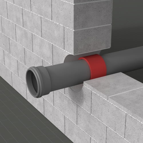 Opaskę należy umieścić na rurze. Wsunąć wewnątrz przegrody. Szczelinę wypełnić zaprawą.