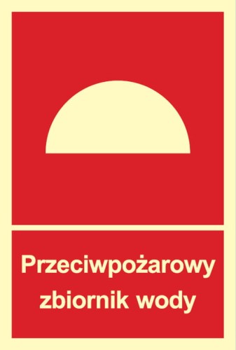 Znak "Przeciwpożarowy zbiornik wody" do oznaczenia miejsca niezmiernie ważnego podczas akcji gaśniczej.