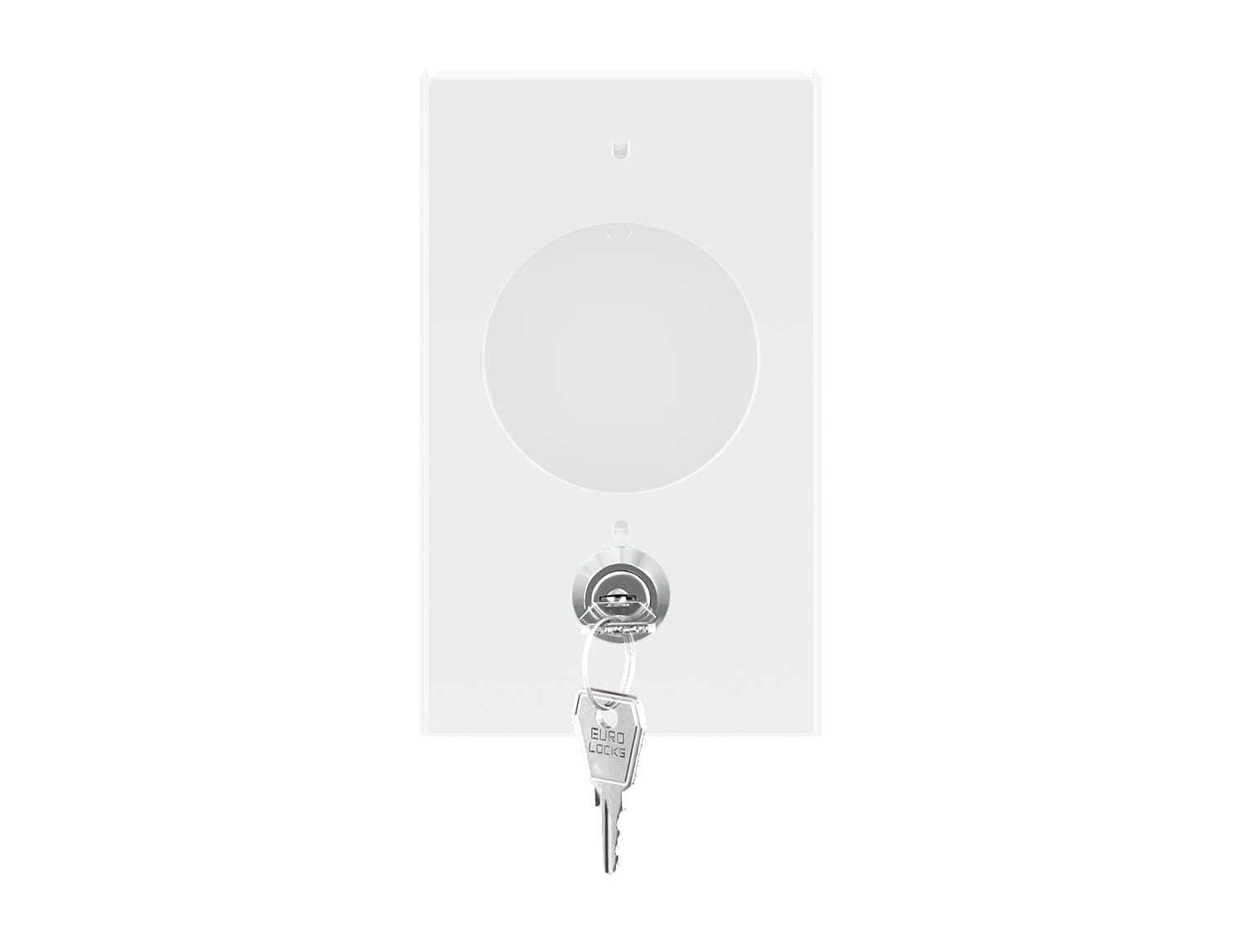 Skrzynka posiada okrągłe okienko, przez które widoczny jest klucz ewakuacyjny, co ułatwia szybsze zlokalizowanie go w sytuacjach kryzysowych. Dzięki prostemu, ale funkcjonalnemu designowi, kasetka idealnie wpisuje się w standardy bezpieczeństwa, a jej biały kolor sprawia, że jest dobrze widoczna, ale jednocześnie estetycznie pasuje do wielu rodzajów wnętrz.