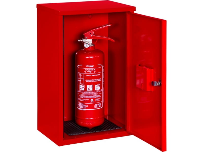 Szafki metalowe na gaśnice służą do przechowywania gaśnic. Drzwi szafki pełne wykonane są z blachy o grubości 1 mm.
