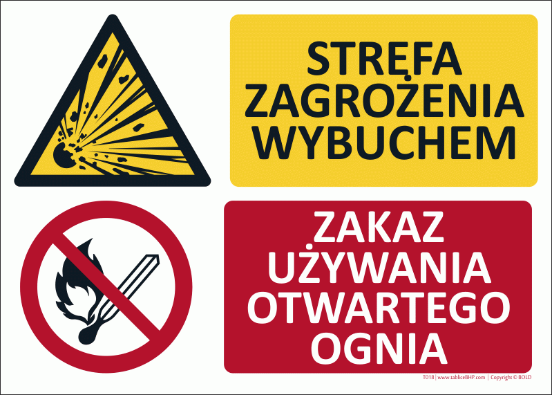 Znak łączony - Strefa zagrożenia wybuchem + Zakaz używania otwartego ognia
