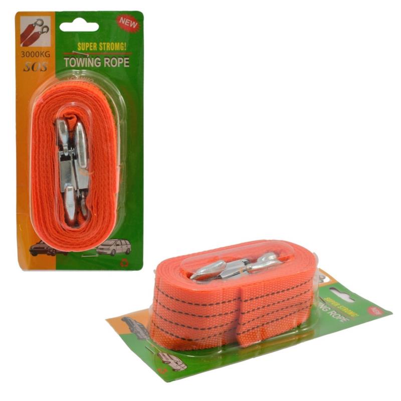 Pas holowniczy o długości 4m i udźwigu 3000kg w kolorze żółtym lub pomarańczowym.
