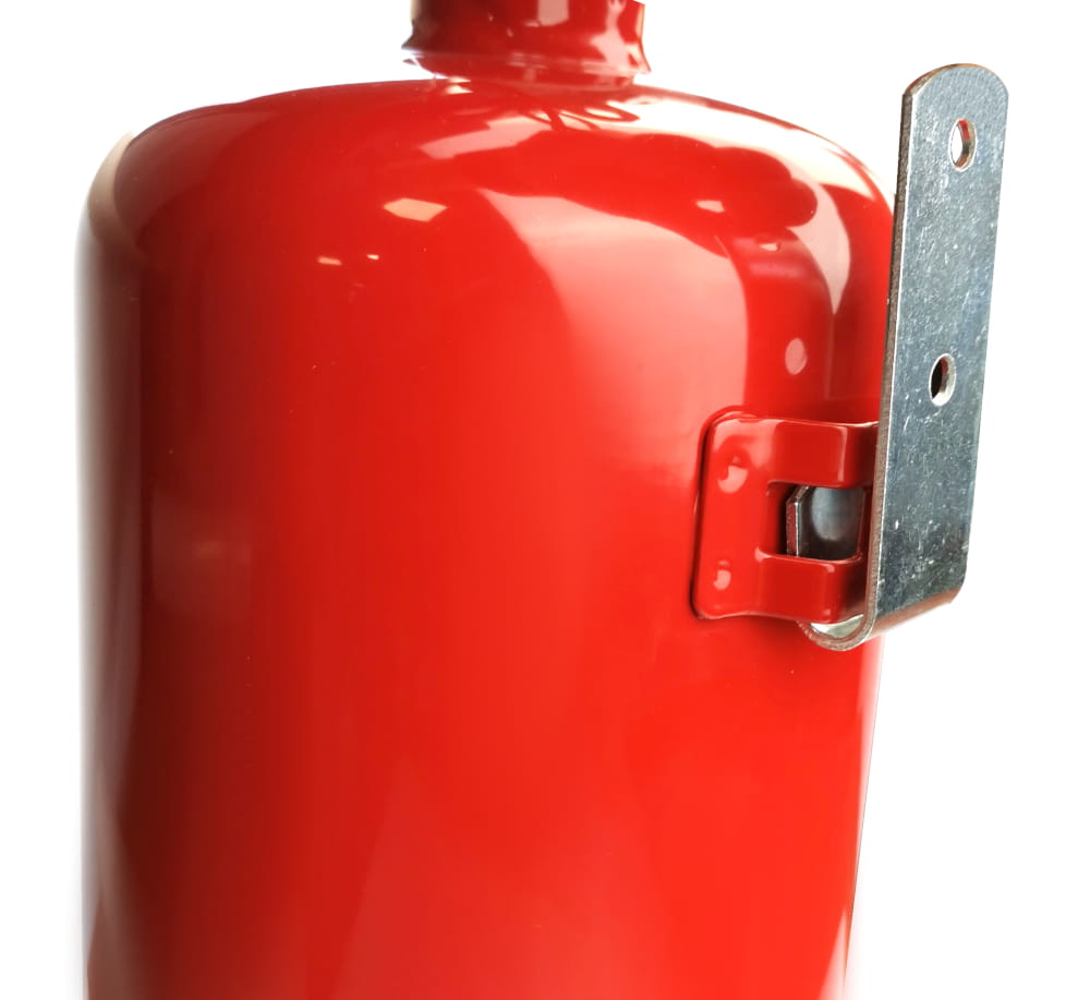 Uniwersalny wieszak do wszystkich gaśnic z zaczepem na zbiorniku.