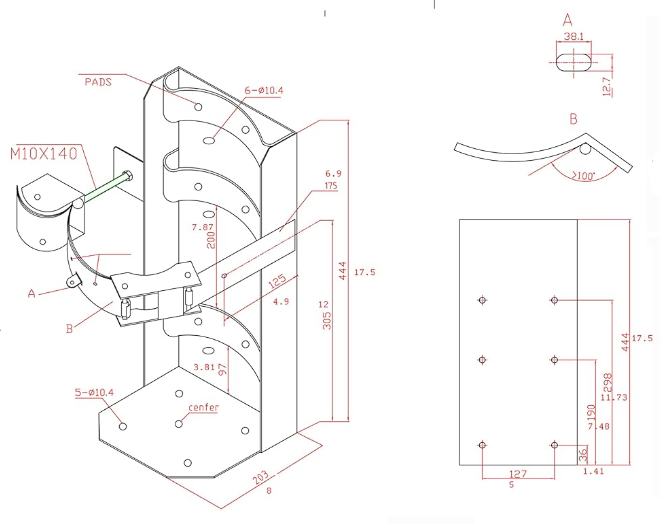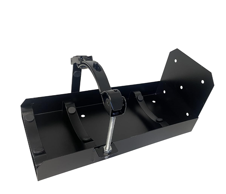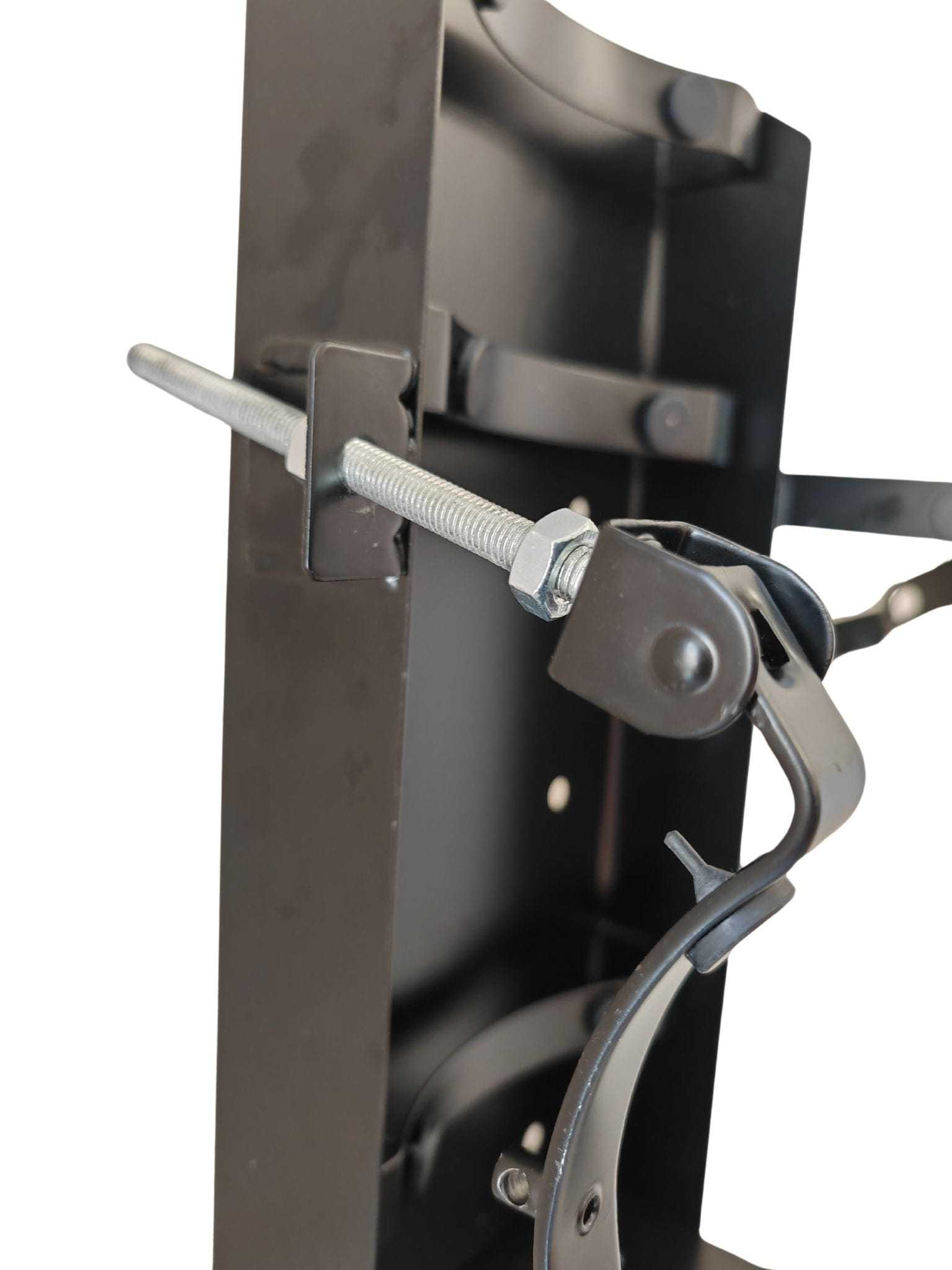 Ocynkowany wspornik z wewnętrznymi podkładkami ochronnymi. Regulowana szerokość dopasowana do różnych pojemności. Powłoka elektrostatyczna.