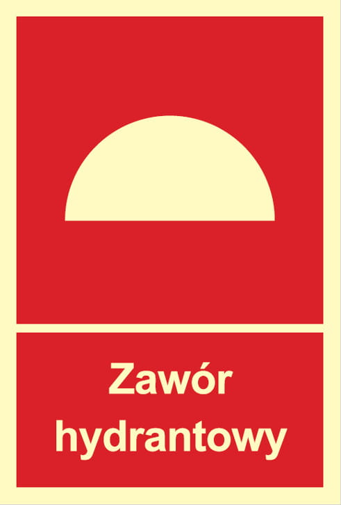 Znak "Zawór hydrantowy" do oznaczenia miejsca niezmiernie ważnego podczas akcji gaśniczej.