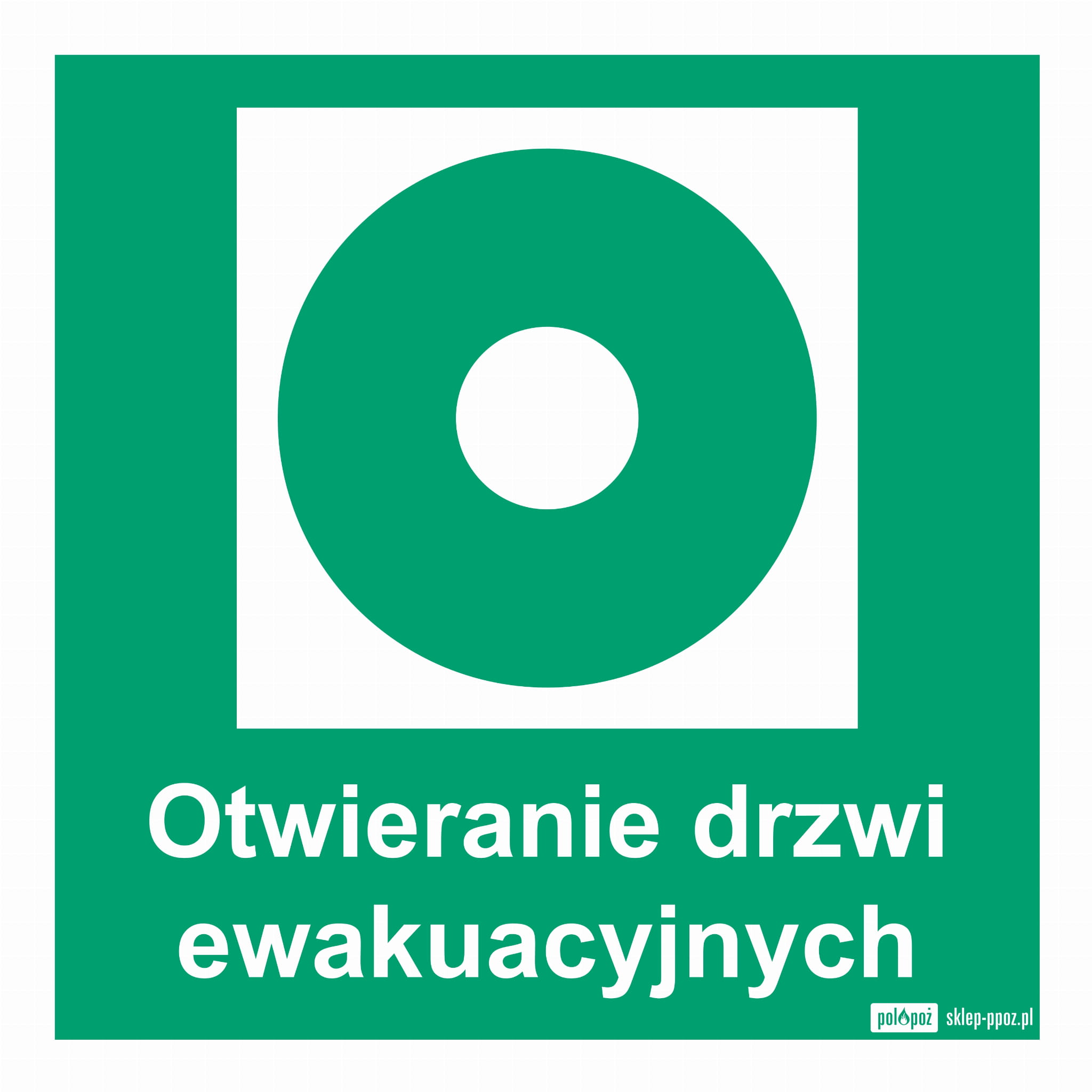 Znak:Otwieranie drzwi ewakuacyjnych