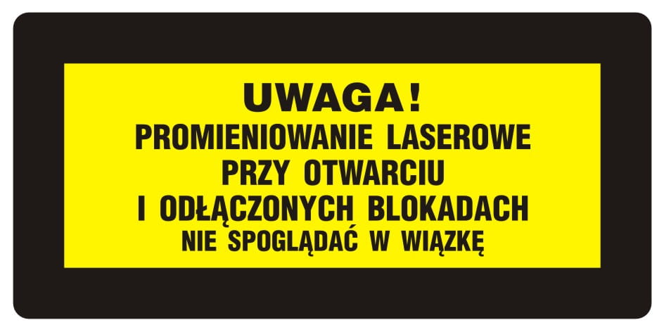 Znak: Uwaga! -,,- Nie spoglądać w wiązkę. Znak zgodny z normą PN-EN 60825-1:2010