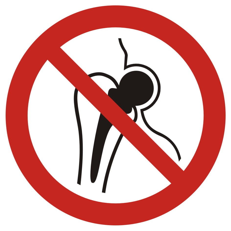 Zakazuje wstępu osobom z metalowymi implantami. Znaki w formatach: F2 42 x 42 cm, H1 66 x 66 cm na podłożu p - wykonujemy na płycie sztywnej PCV o grubości 1,5 mm.