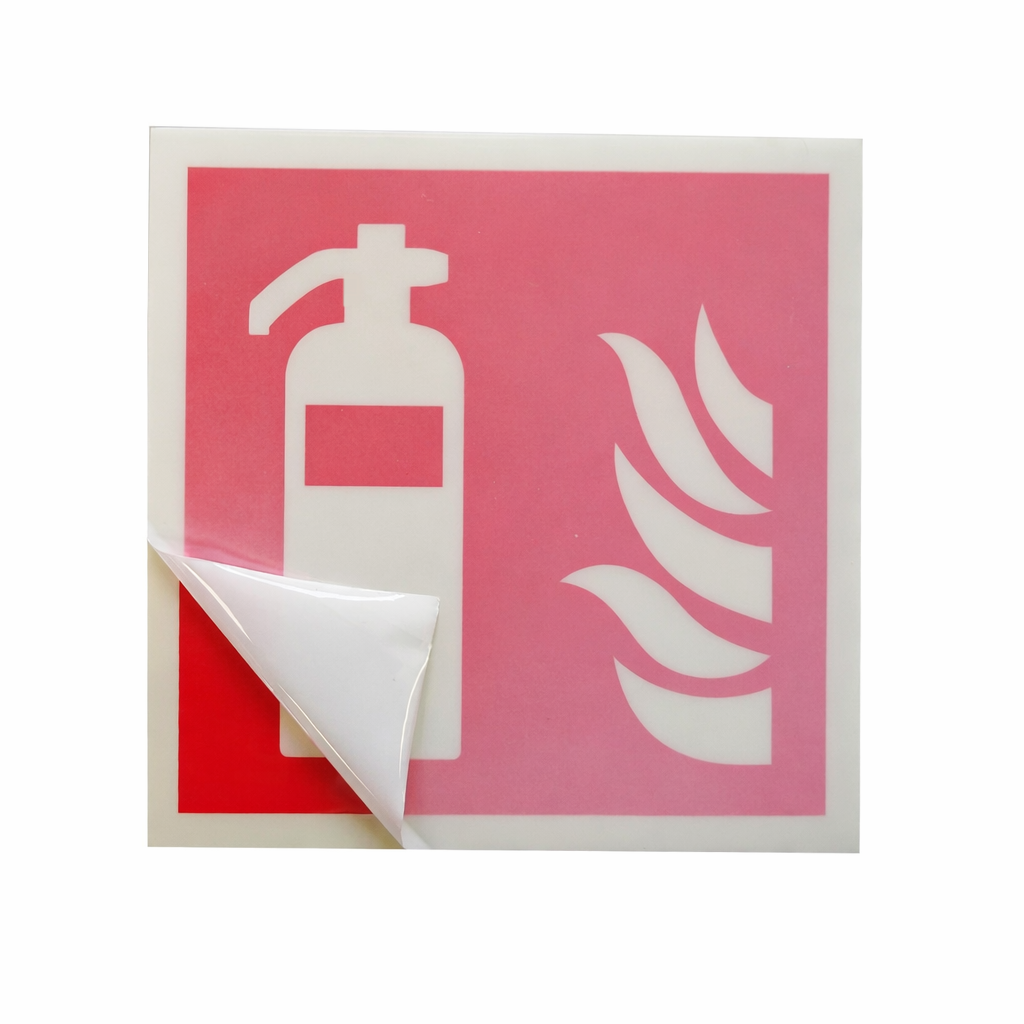 Znak przeciwpożarowy GAŚNICA 20x20cm, fotoluminescencyjny, świeci w ciemności, przylepna płyta TS TD
